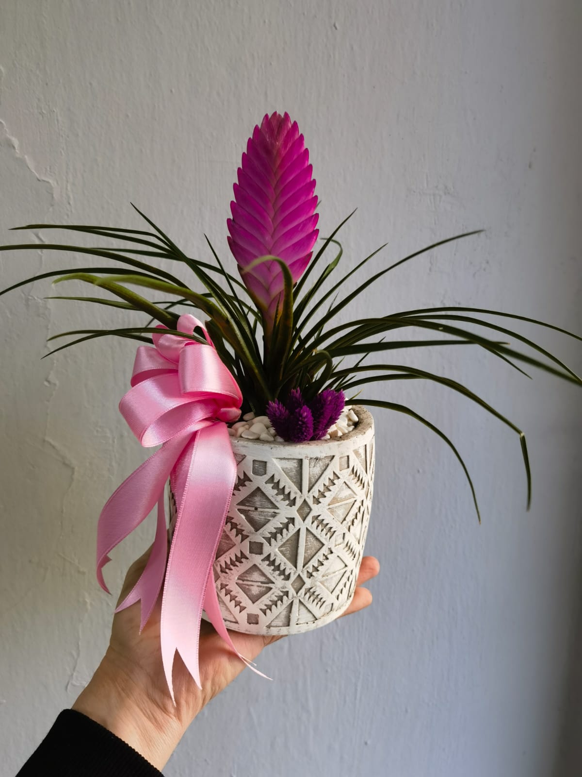 Tillandsia Cyanea diğer ismiyle Hava Bitkisi Ekvador kökenli ithal bir bitkidir. Koyu yeşil yapraklara ve bu yapraklar arasından büyüyen canlı pembe renkte bir çiçeğe sahiptir. Bakımı kolay olan bu bitki 20°’nin altına düşmeyen, direkt güneş ışığı almayan aydınlık bir alana yerleştirilmeli ve kontrol edildiğinde toprak tamamen kurumuşsa sulanmalıdır. Sulama esnasında fazla suyun drenaj deliklerinden tamamen akmasına dikkat edilmelidir. Yılda 2 kez gübre desteği ve yılda 1 saksı değişimi bitkinin gelişimi için önerilir.