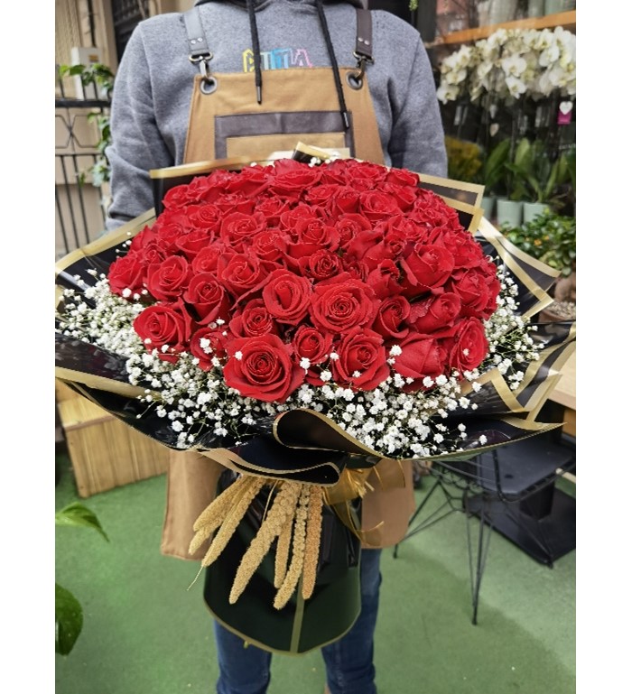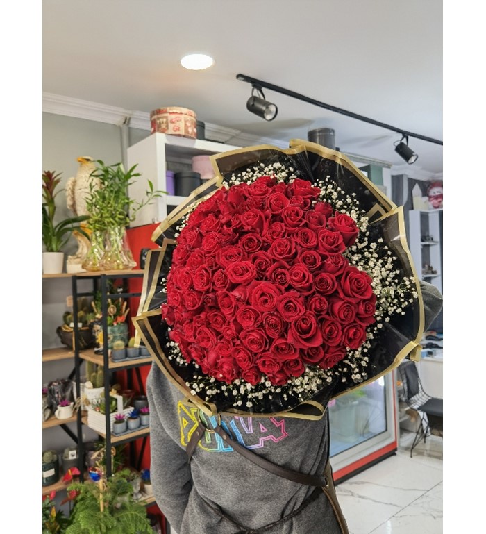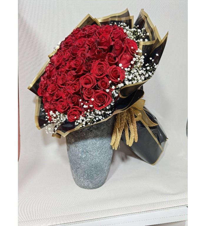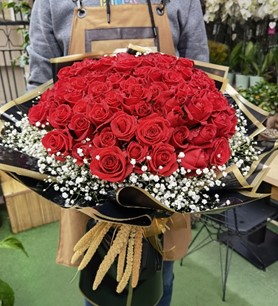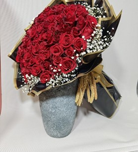 101 Adet kırmızı gül ile hazırlanmış özel buket.