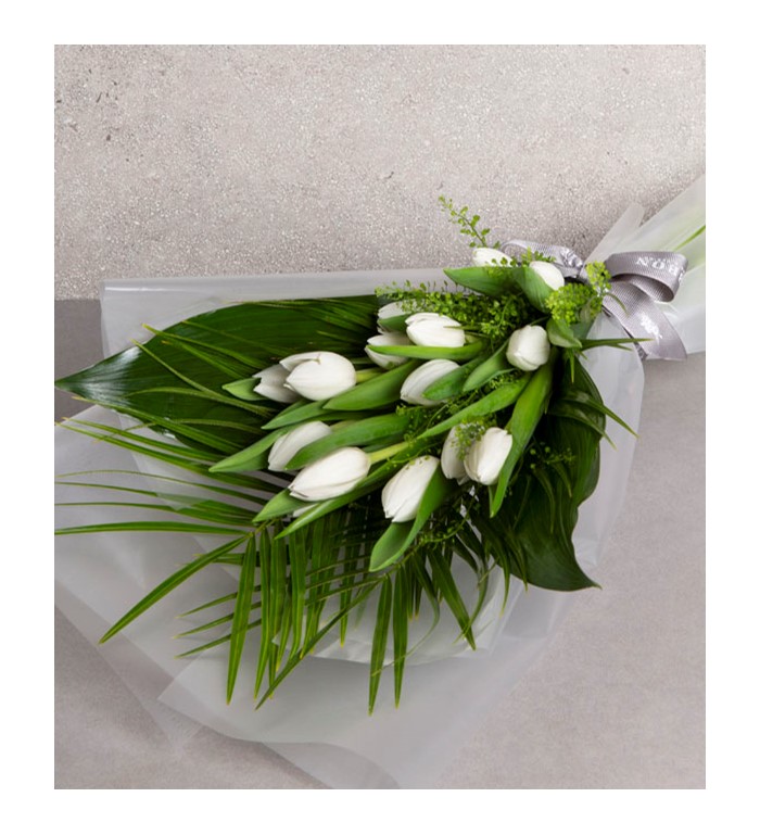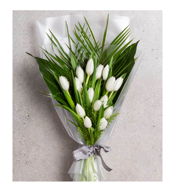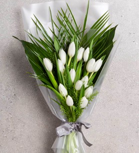 Beyaz laleler (15 adet beyaz lale) ile hazırlanmış özel buket.