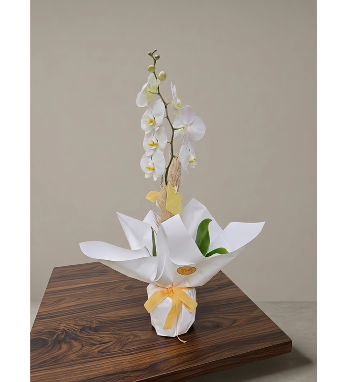 Bitkinin saksısı beyaz seramiktir. Ürün görseldeki gibi ambalaj yapılarak alıcıya gönderilir.