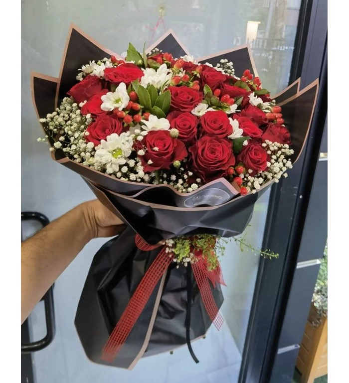 41 adet kırmızı gül ile hazırlanmış özel kız isteme çiçeği.