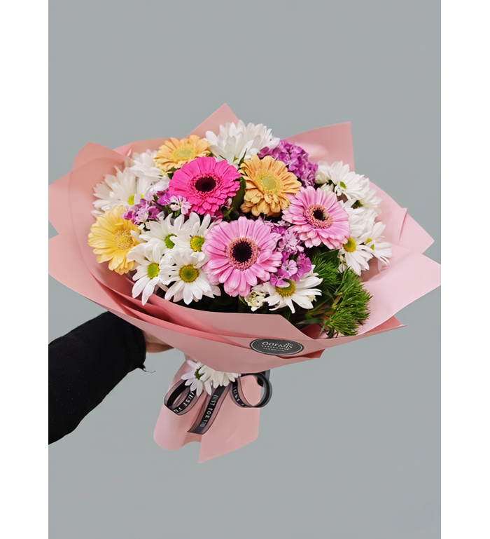 Bukette kullanılan çiçeklerin çeşitleri ve renkleri stok durumuna göre değişkenlik gösterebilir.