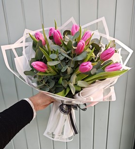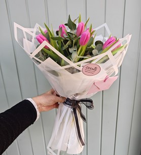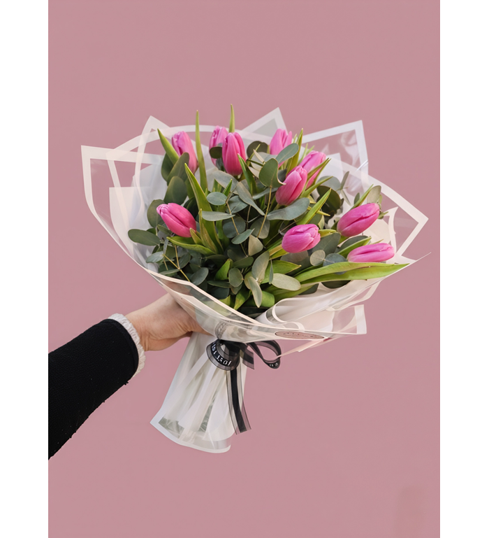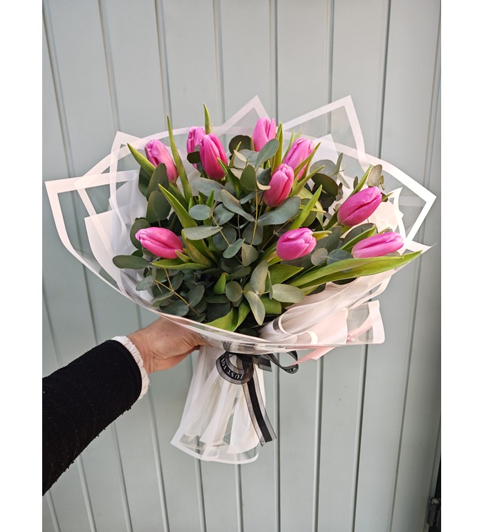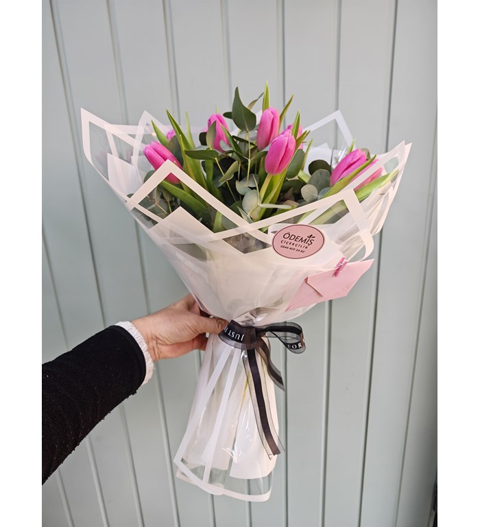 10 adet Pembe lale ile hazırlanmış özel buket.